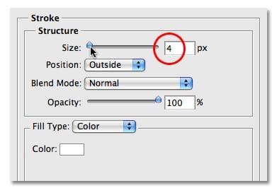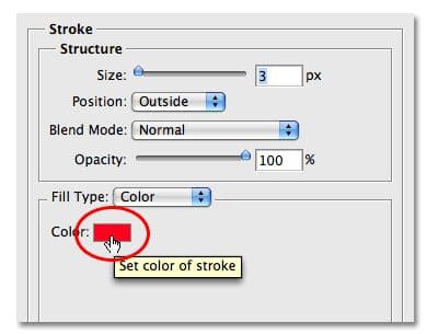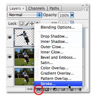 بر روی آیکون Layer Styles در پایین پالت لایه ها کلیک کنید. انتخاب Stroke سبک لایه از پایین لیست: