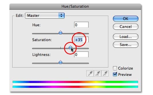 مرحله ۶: افزایش رنگ بخش اصلی موضوع با Hue / saturation