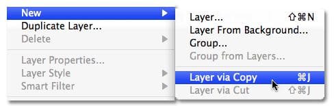 با رفتن به منوی لایه در بالای صفحه نمایش، انتخاب new ، و سپس انتخاب Layer via Copy می توانید از لایه بکگراند کپی بگیرید .