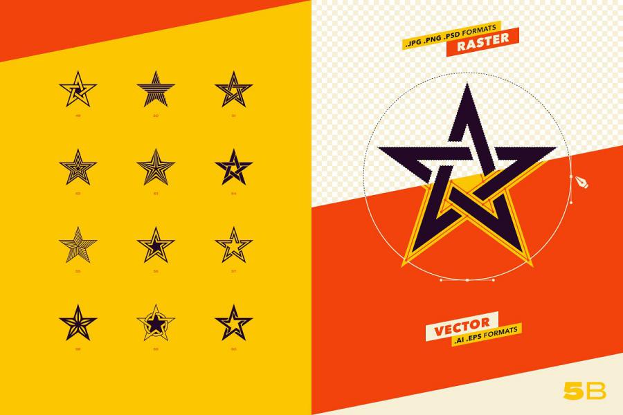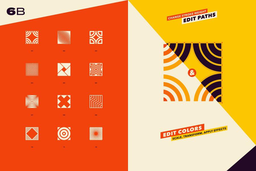 All files are neatly organized into a folder structure for better workflow experience. Shapes are grouped according to their graphic style and basic forms, such as a circle, triangle, hexagon, star, square and rhombus. To emphasize the visual form of the shapes, they are shown predominantly in off-white, red, yellow and dark purple colors, but you can apply your own palette and add your brand name in a few clicks. All elements come in a variety of file formats for you to choose from.