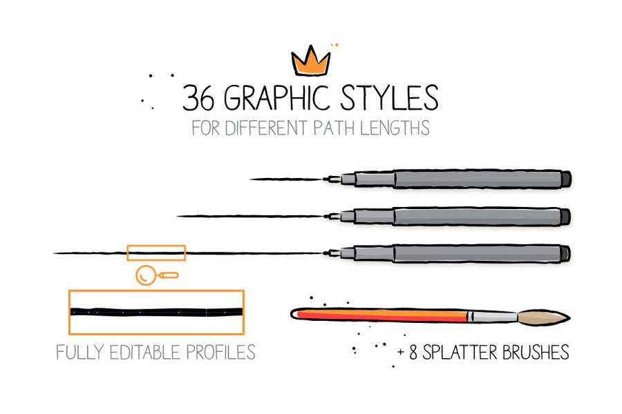 • ۳۶ hand drawn graphic styles each (same profiles different stroke weights)