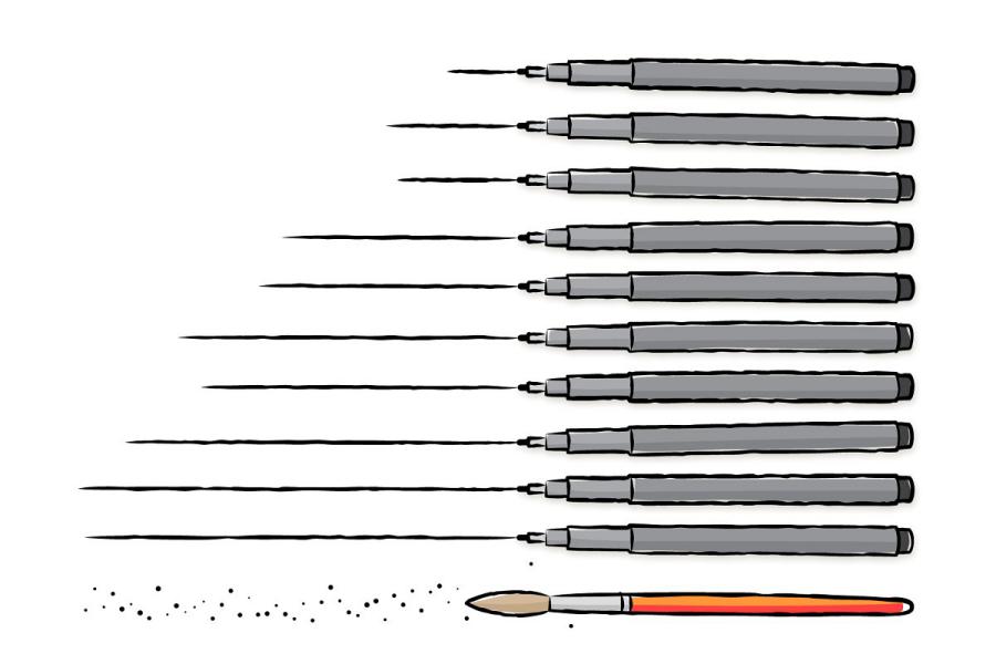 AI used ballpoint pen brushes که خط خودکاری هست رو هم قرار بدید
