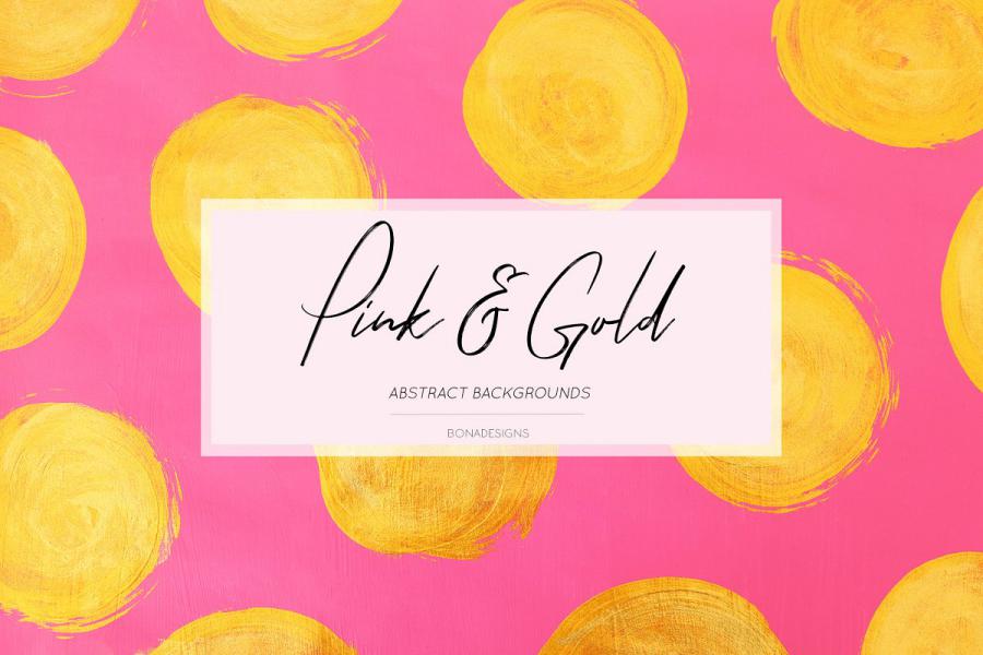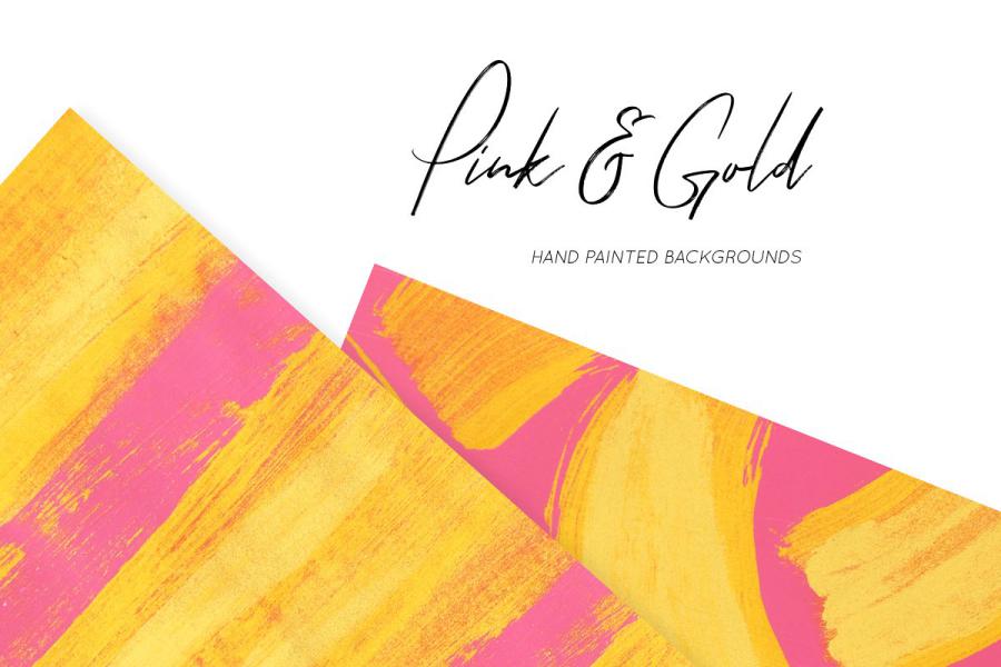 Pink & Gold Abstract Backgrounds, This set of 10 high resolution hand painted pink & gold collection set.