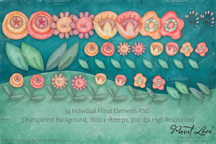 • ۳۴ Individual Floral Elements PNG (Transparent Background, 1800 x 1800 px, 300 dpi High Resolution)
