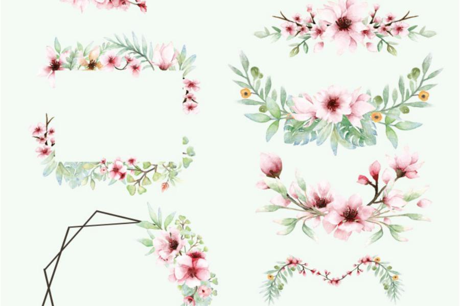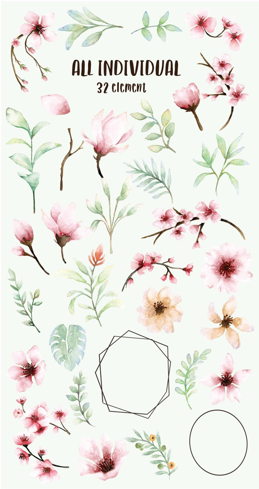 Pink Floral – Sakura Watercolor set.