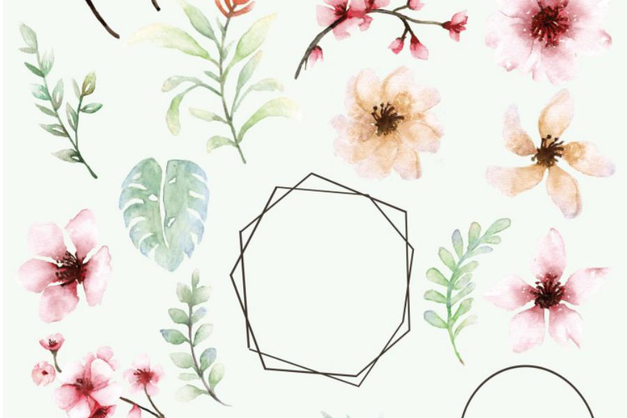 Each element had been carefully hand painted. Work great for any design needs : wedding design, modern advertising design, poster, book / cover title, website / blog, card, custom fabric design, print craft design, and any watercolour illustration needs.