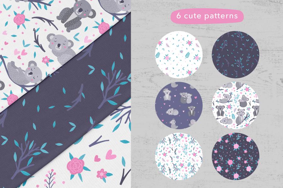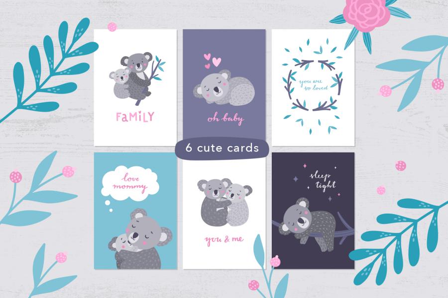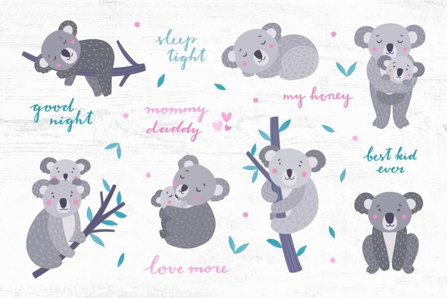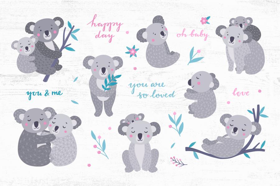 • ۱۶۵ individual PNG files (koalas, plants, branches, flowers and lettering) with transparent background for each element 300 dpi;