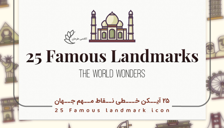 دانلود ۲۵ آیکن خطی نقاط مهم جهان – Famous landmark icon