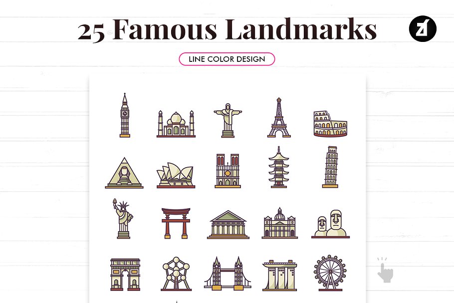 عنوان : Download 25 Famous landmark icon