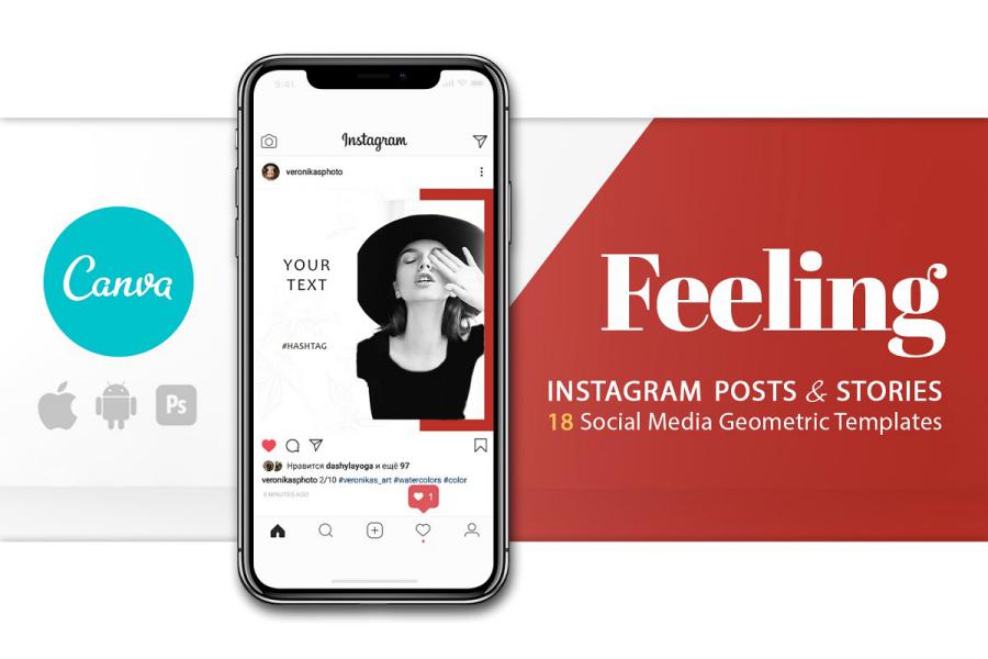A set of templates FEELING for the design of a social network. The set consists of concise geometric forms is ideal for combining your photo content into a single stylish visual concept. Due to this, your profile will look professional and will surely attract the attention of the audience.