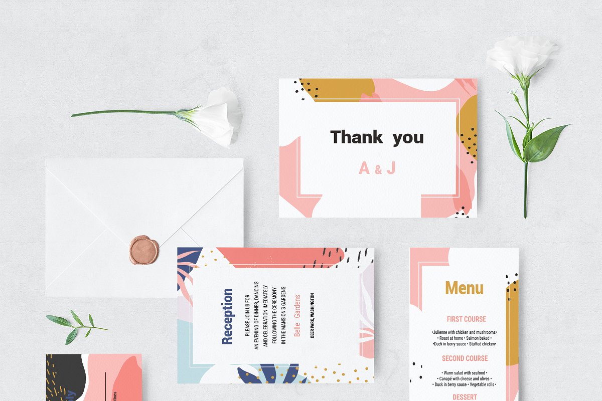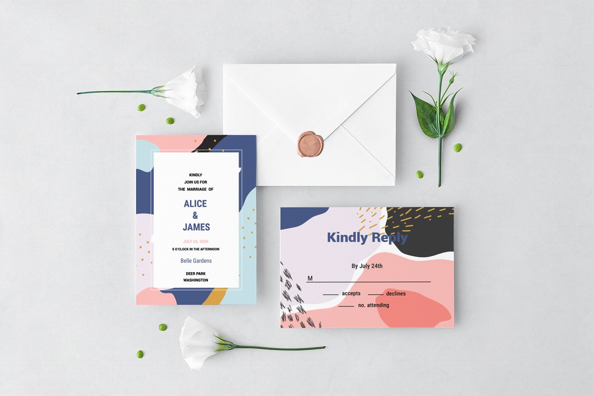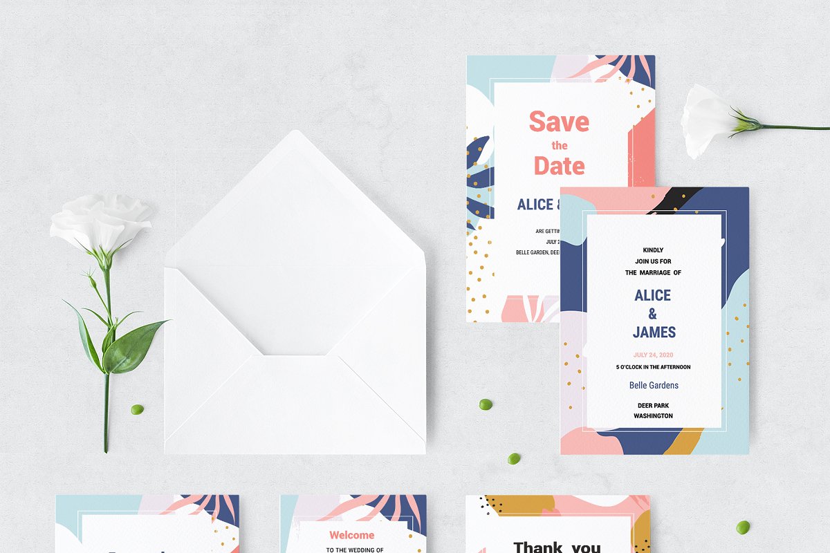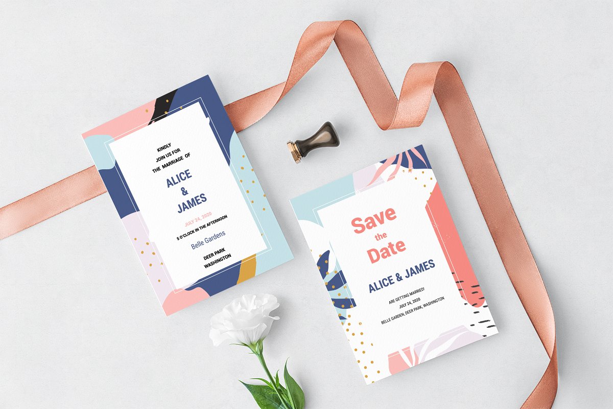مجموعه فایل های طراحی انتزاعی ممفیس – Memphis Invitation Set