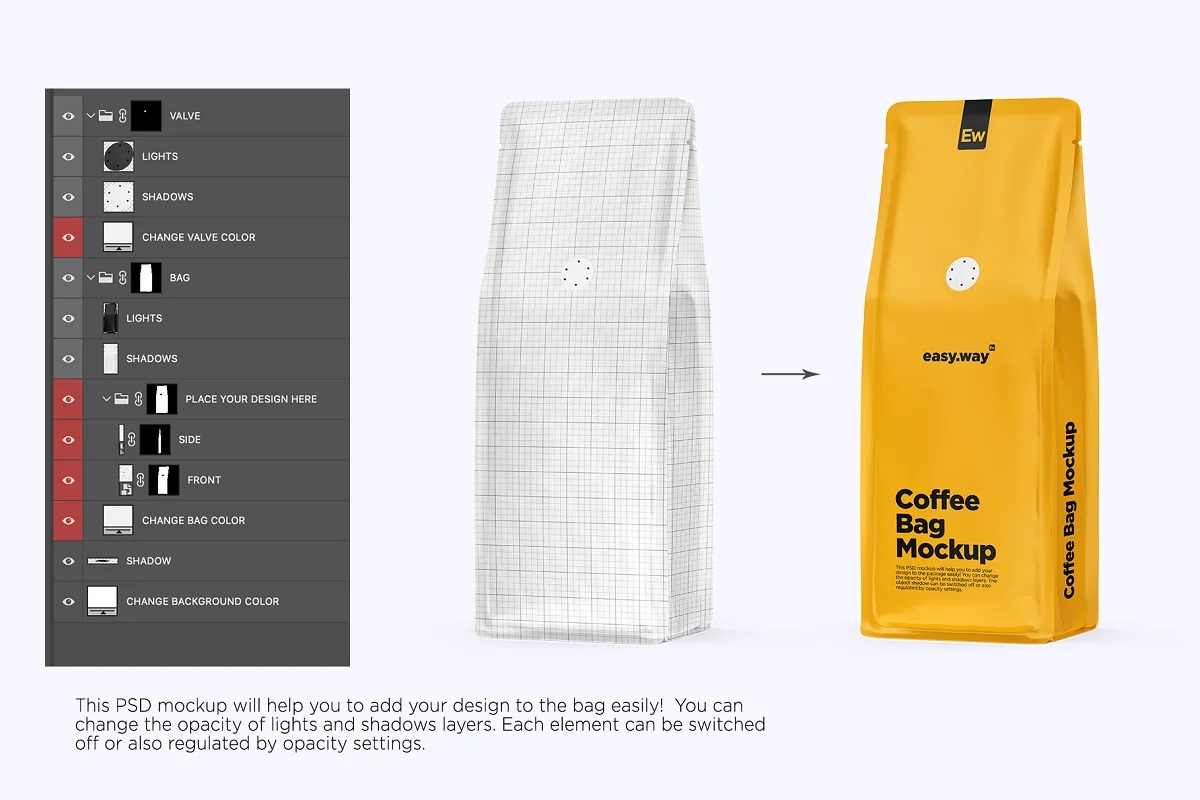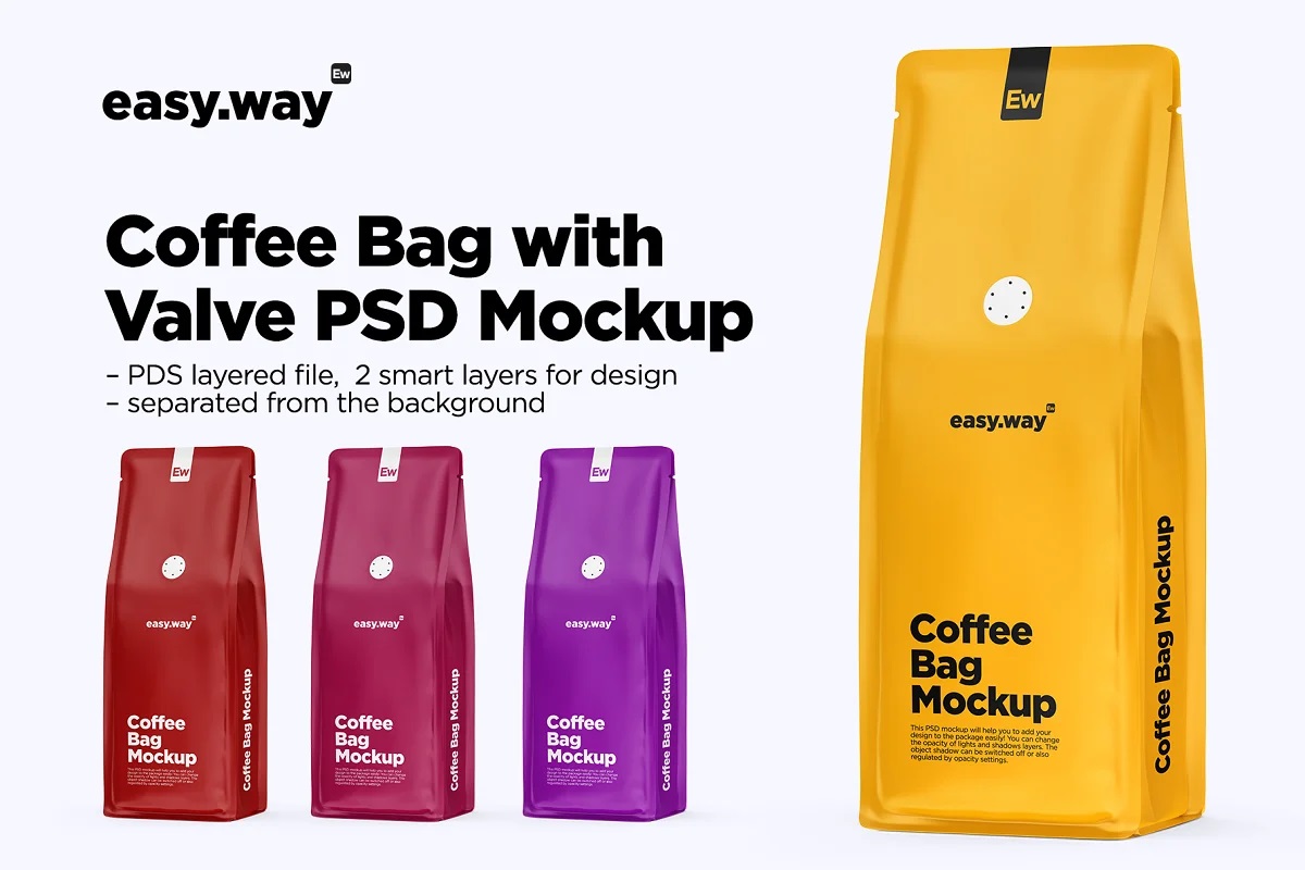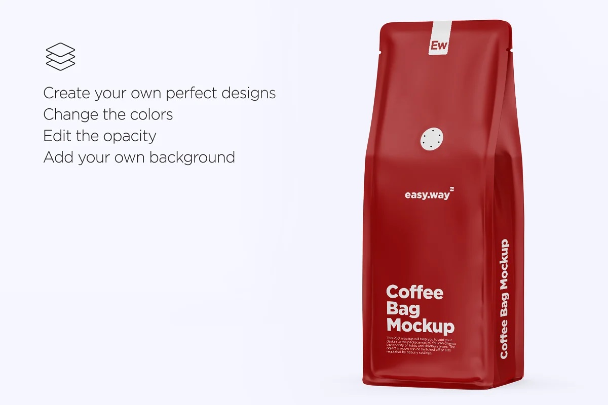 شما با استفاده از این موکاپ بسته بندی سوپاپدار قهوه می توانید طرح بسته بندی قهوه خود را به شکل زیبایی به نمایش بگذارید .