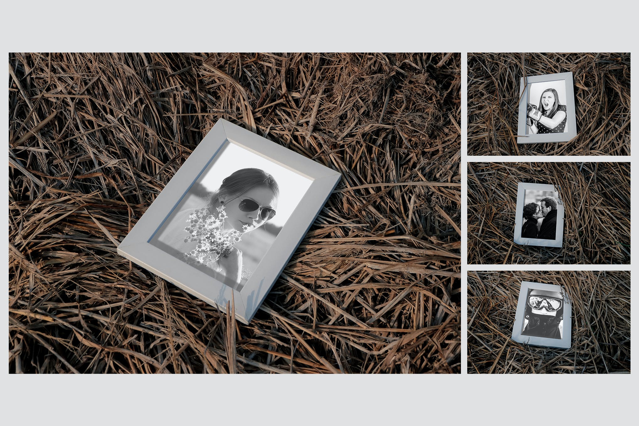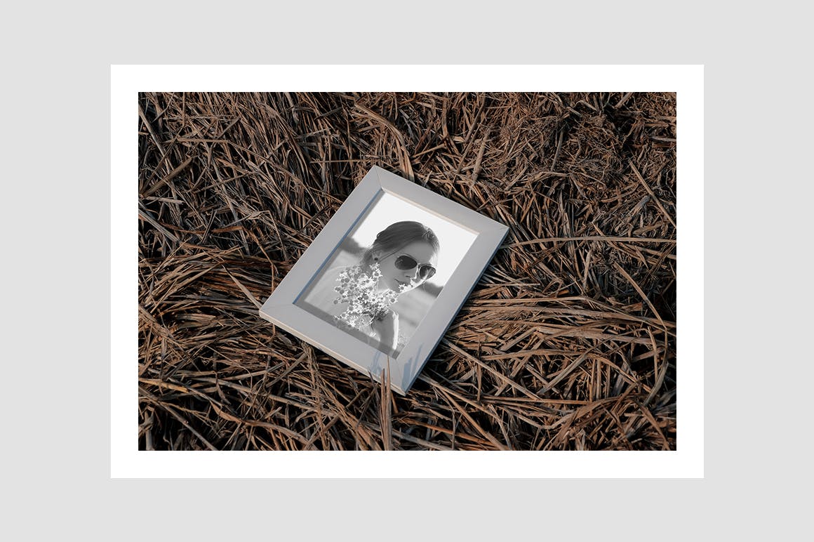 موکاپ قاب عکس در علفزار – Photo Frame on Haistack Mockup
