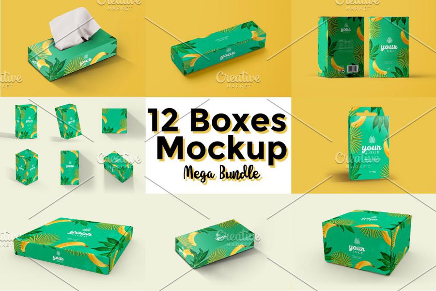 ۱۲ موکاپ کاربردی جعبه دستمال کاغذی – Boxes Mockup Mega