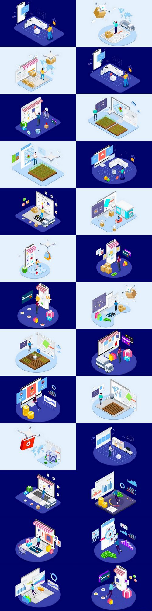 در این پست مجموعه ای از تصویرسازی های وکتور ایزومتریک برای دانلود در ایران جی اف ایکس قرار گرفته است. شما با استفاده از این تصویرسازی ها می توانید فضای وبسایت و صفحات لندینگ خود به شکلی زیبا تزیین کنید.