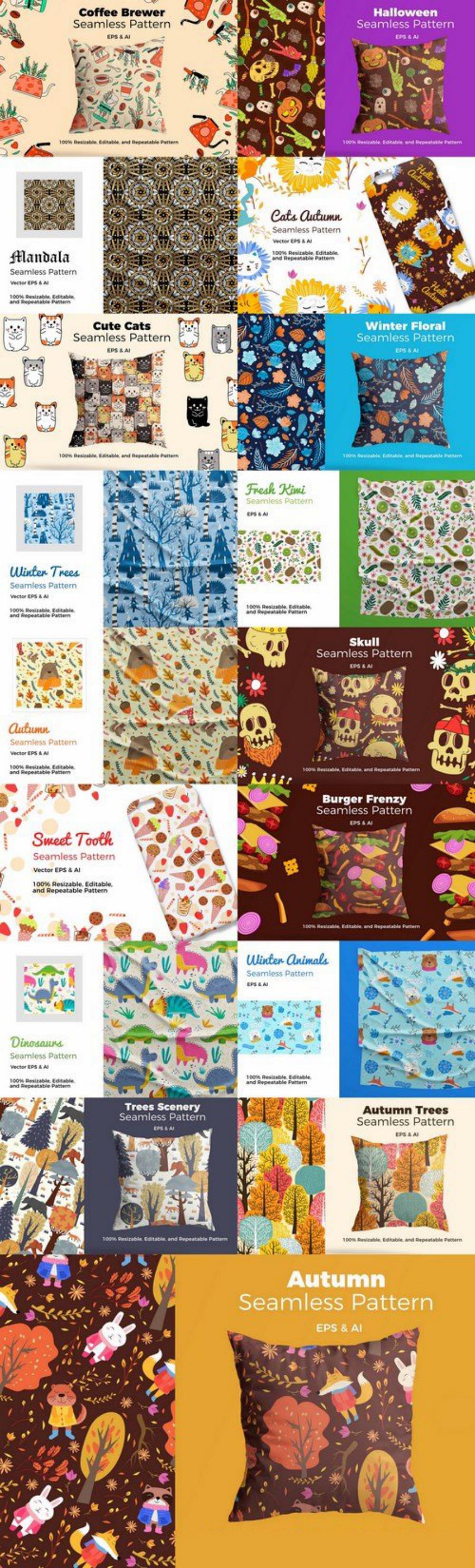 پترن های تصویرسازی شده جذاب – Seamless Pattern bundle