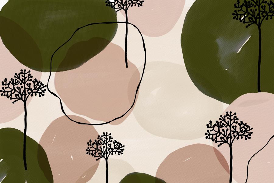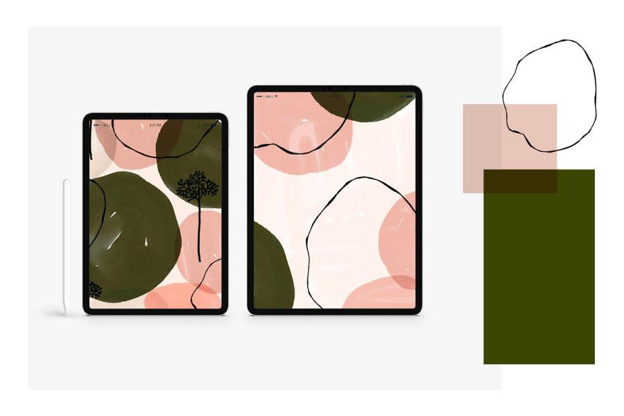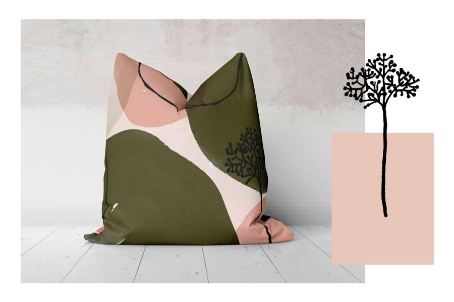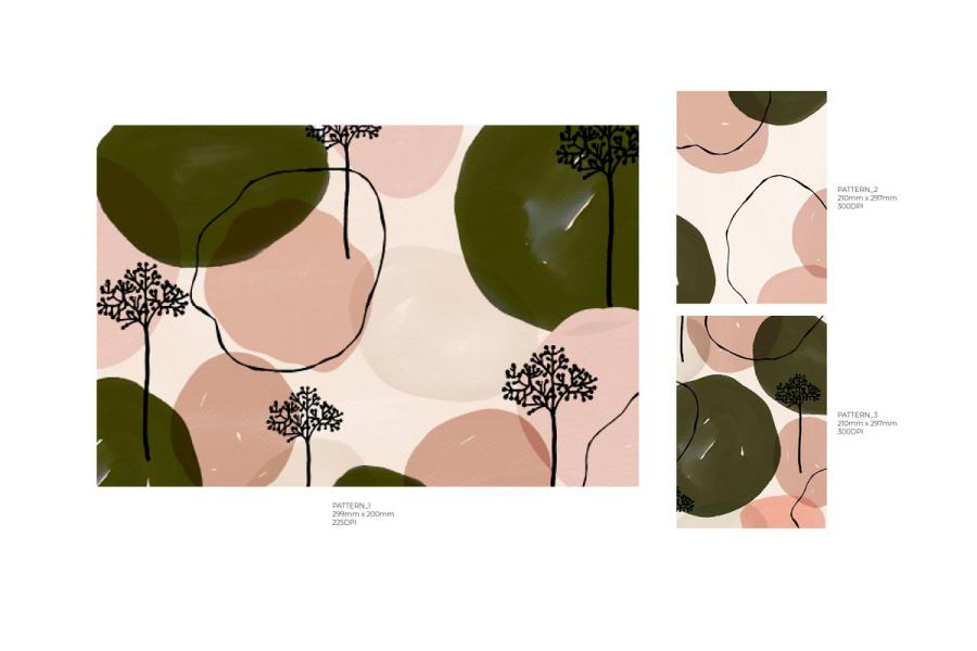 Soft Organic Shapes Pattern in soft shades of Blush and Green