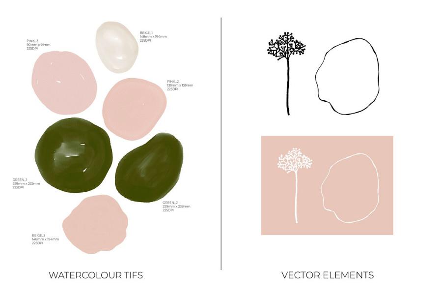 Dreamy watercolour velveteen green and shades of blush make the perfect colour combination for your next design project!