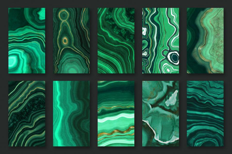 ۱۰ تکسچر طلایی و مرمر سبز – Malachite & Gold Textures