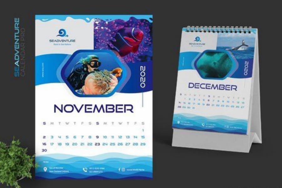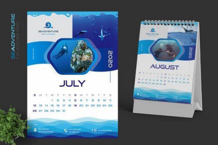 فایل لایه باز تقویم دریایی ۲۰۲۰ – ۲۰۲۰ Sea Calendar