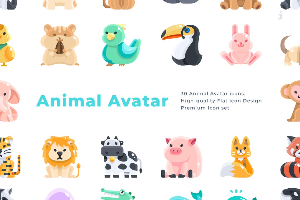 ✔ Justicon Present – ۳۰ Animal Avatar Icons – Flat