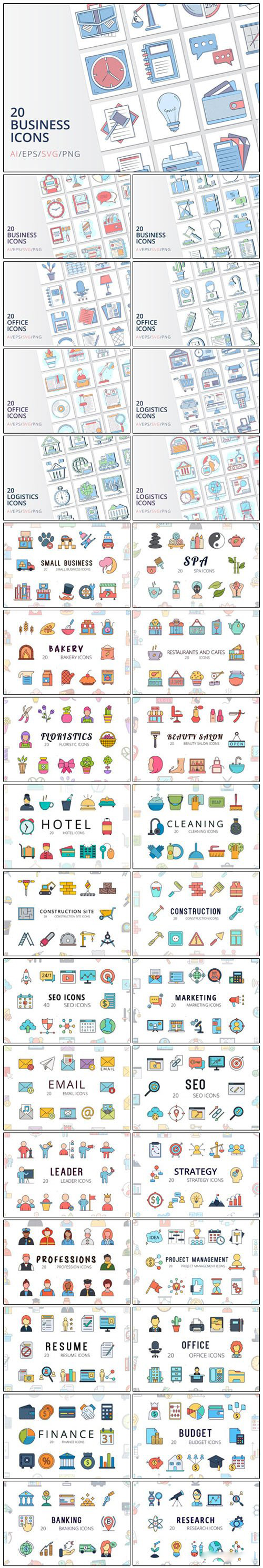 ۳۶ مجموعه آیکون خطی با موضوع های مختلف – Huge Vector Icons