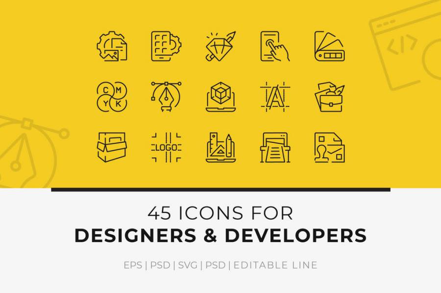 ۴۵ آیکون خطی برای طراحان وب و گرافیک – Icons Designers