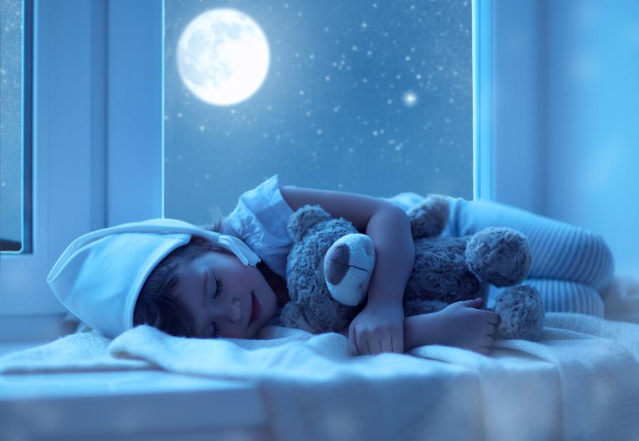 نمونه تصاویر عکس استوک دختر بچه در فضای پنجره رویایی شب: