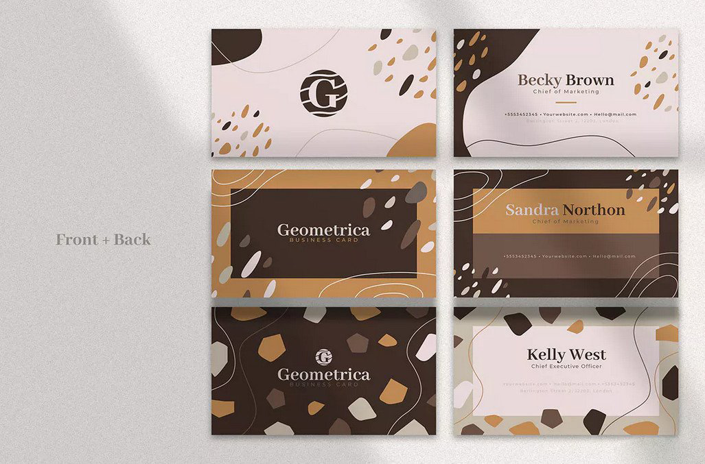 Introducing a collection of 6 elegant business cards with abstract shapes.