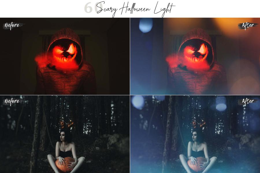 ۶۰ Scary Halloween Light Pack is one of the Best Flare lights and Bokeh lights. You are provided with a perfect package of different lights that allow you to create the perfect look for your Halloween images, complement the story of your images and make them more natural.