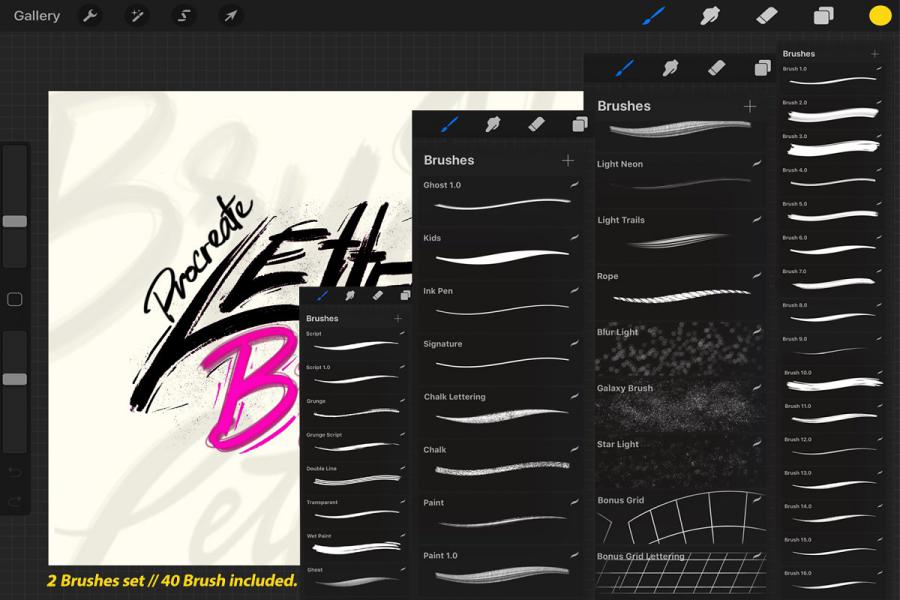 نمونه تصاویر مجموعه ۳۸ فونت و ۲ براش برای Procreate :