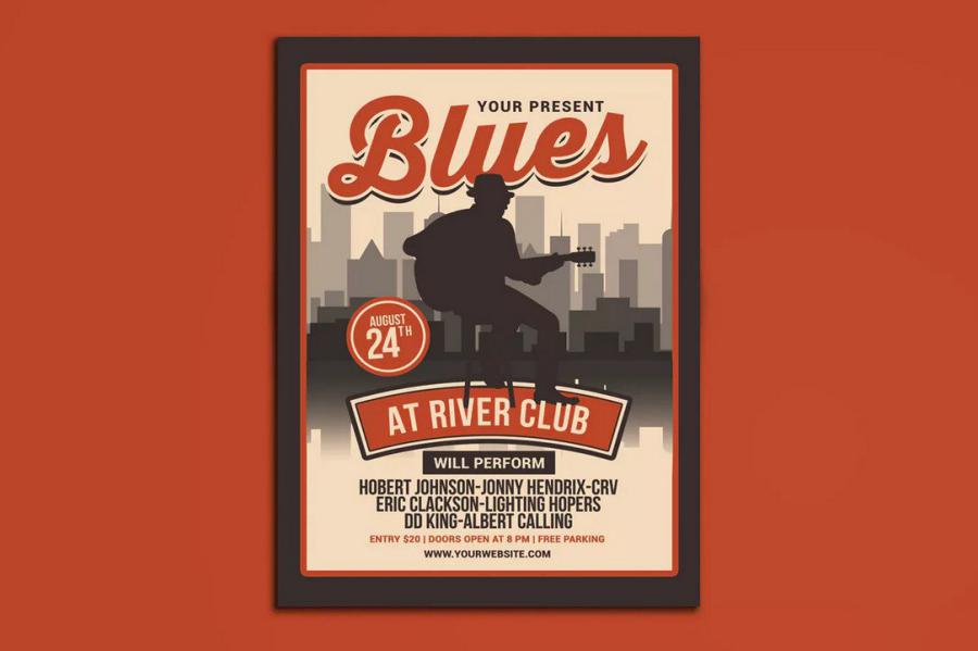 فایل لایه باز پوستر کنسرت موسیقی – Blues Music Flyer
