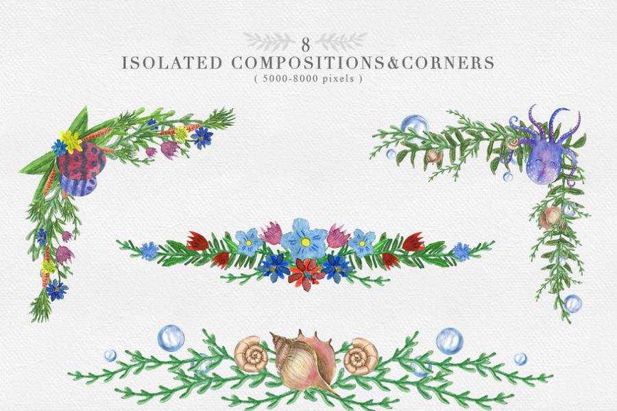 ۱۵ BONUS Ocean Creatures&Elements (3000-7000 px; 300 dpi)