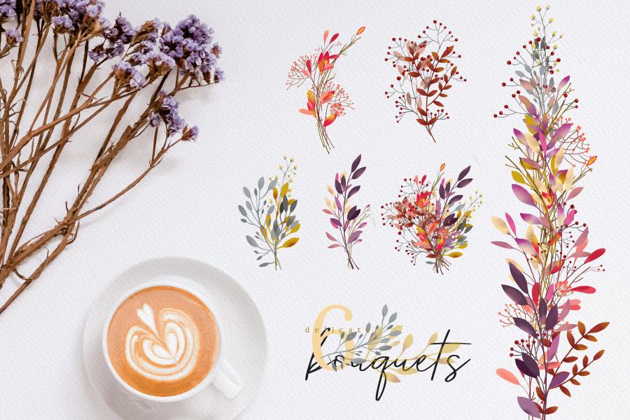 نمونه تصاویر png برگ ها و گل های آبرنگی پاییزی: