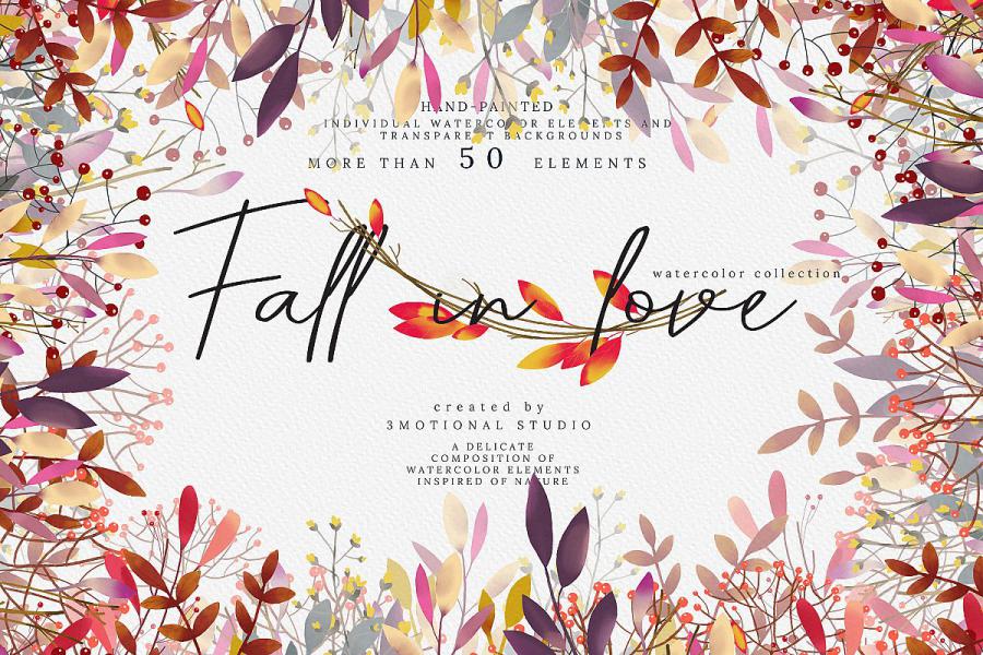 تصاویر png برگ و گل های آبرنگی پاییزی – Fall in Love Watercolor