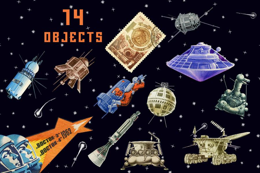 This vintage USSR inspired graphics will bring you to the Soviet Union space program times. Looks great on clothing, cups, stickers, badges, posters, and others.