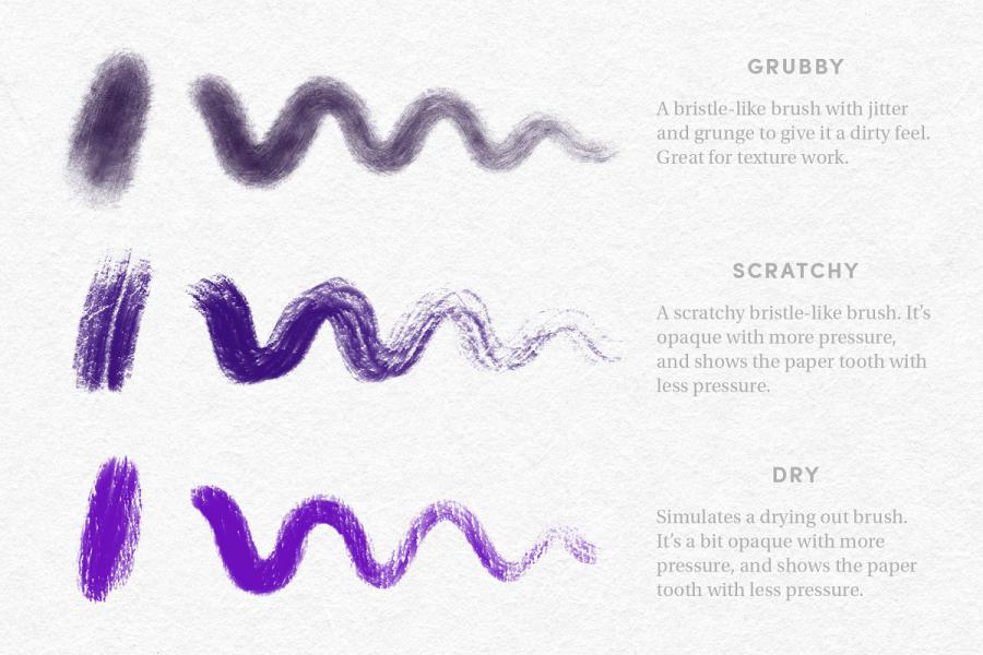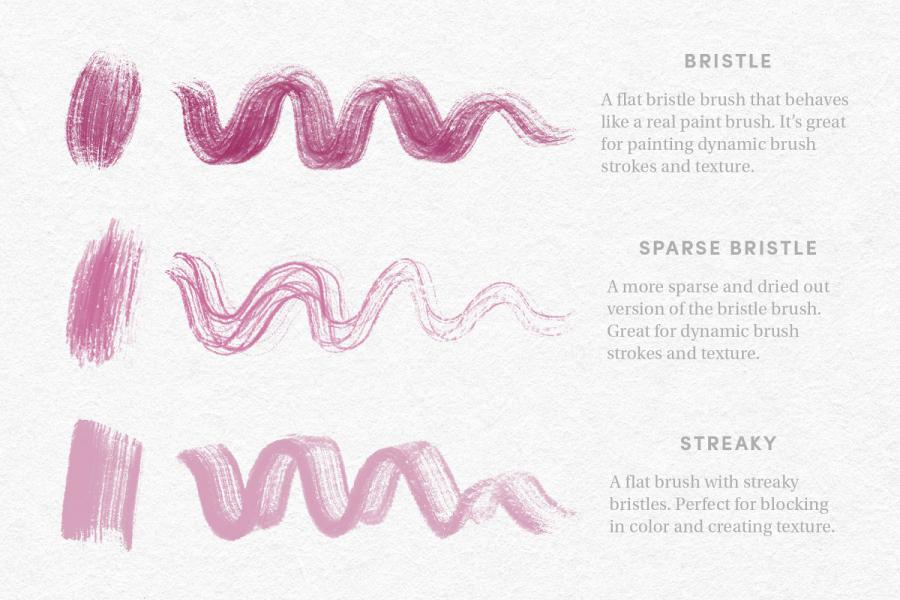 A short description of each brush is in the product images to help you get a feel for how the tools can be used. This product is only compatible with Procreate 4+.