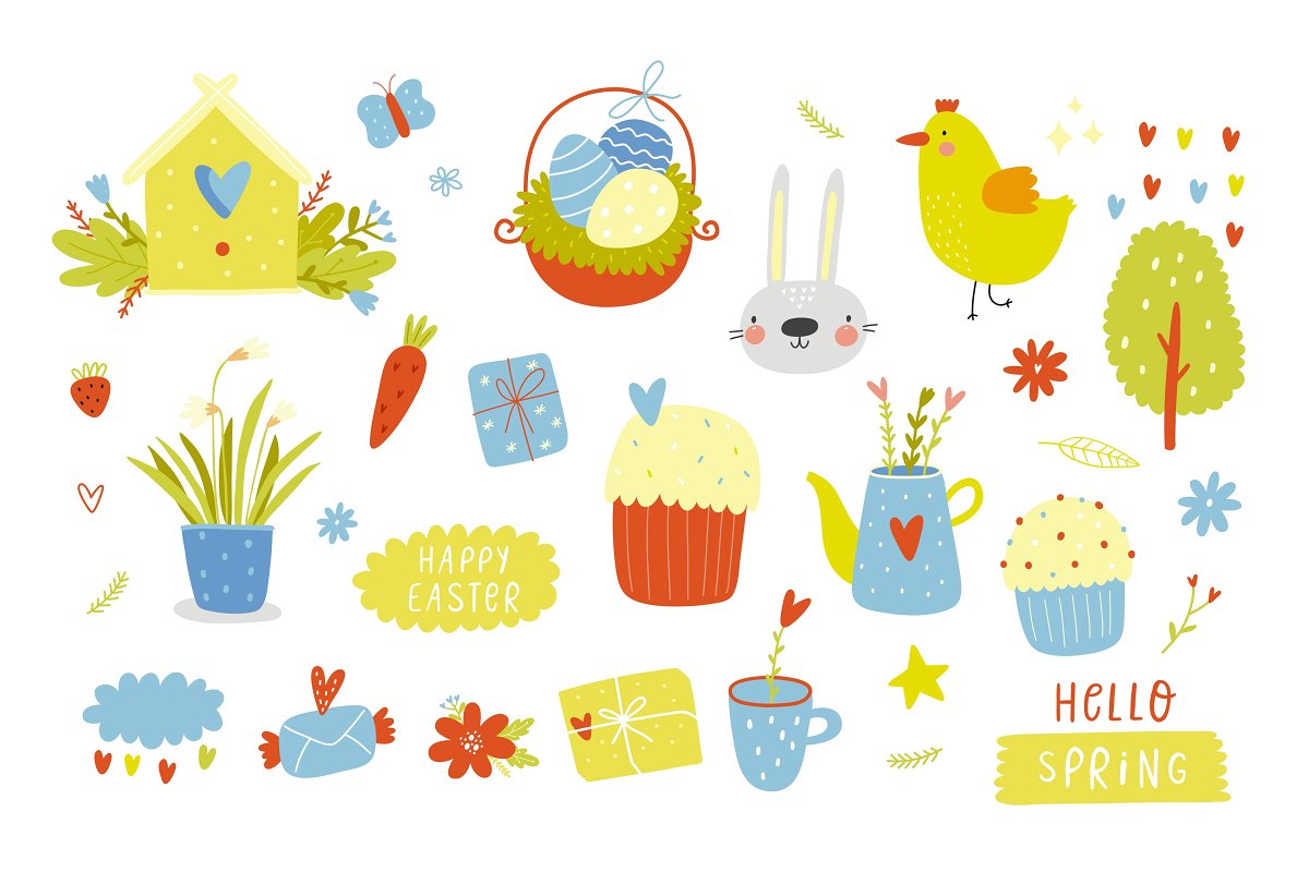 وکتور تصویرسازی شده خرگوش – Happy Vector Set With Bunny