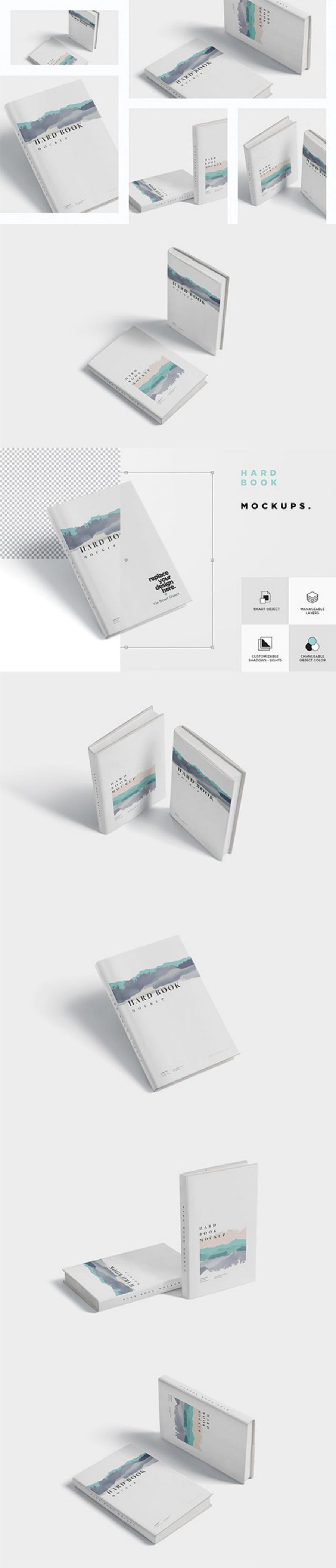Use these hard book mockups to show your gorgeous book branding designs much swiftly. All mockups are crafted from real photographs to give your best presentation experience. Just use Photoshop for editing and produce unlimited presentations of your book cover designs.