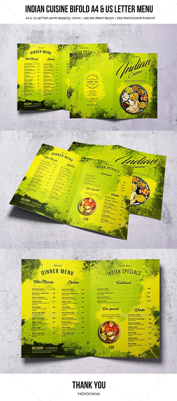 طرح لایه باز منو غذا هندی – Indian Bifold Food Menu