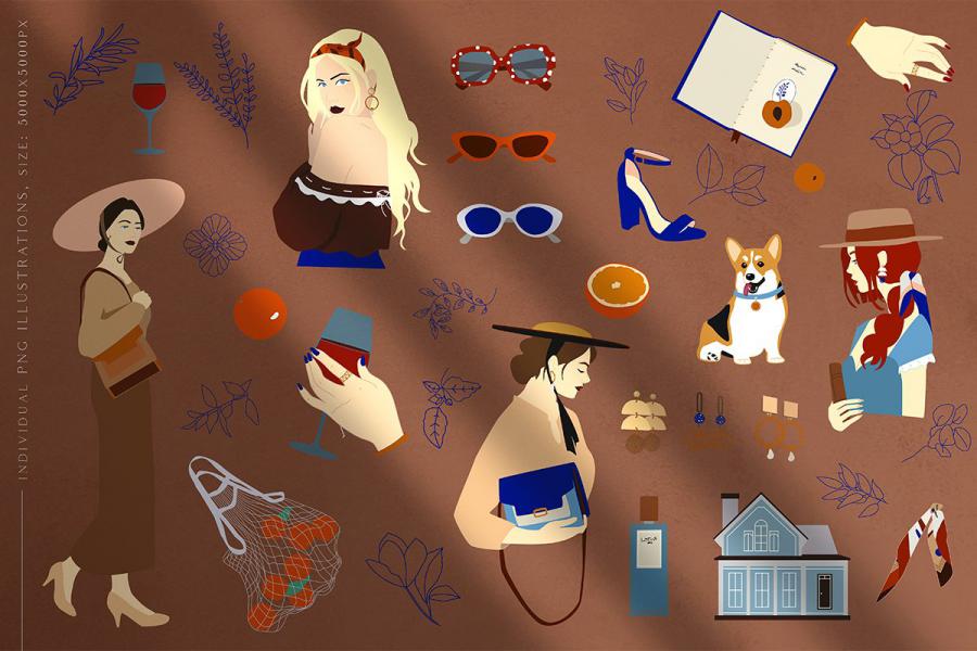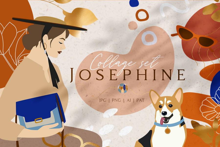 مجموعه طرح وکتور و کلیپ آرت کلاژ دختر – Josephine Collage Set