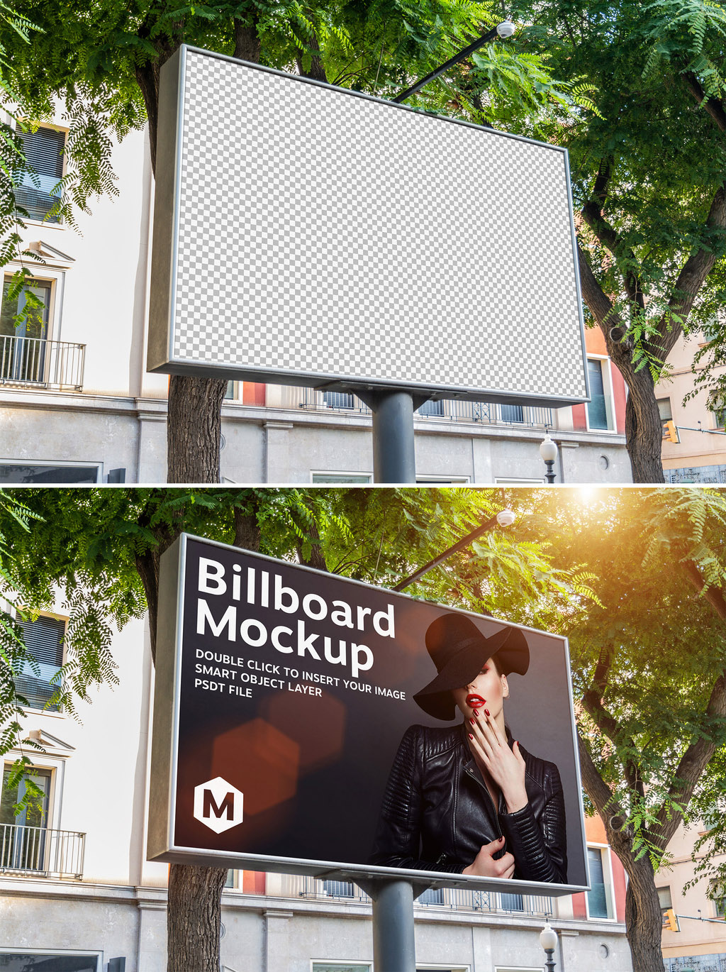 نمونه تصاویر موکاپ بیلبورد افقی در فضای باز: