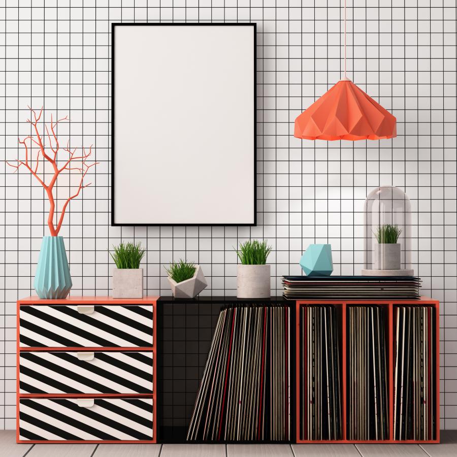 نمونه تصاویر موکاپ پوستر در فضای داخلی خانه: