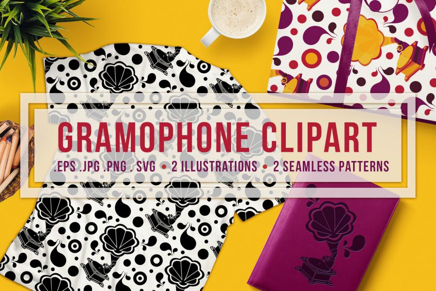 مجموعه کلیپ آرت و پترن بدون درز گرامافون – Gramophone Clipart