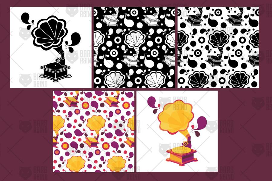 نمونه تصاویر مجموعه کلیپ آرت و پترن بدون درز گرامافون: