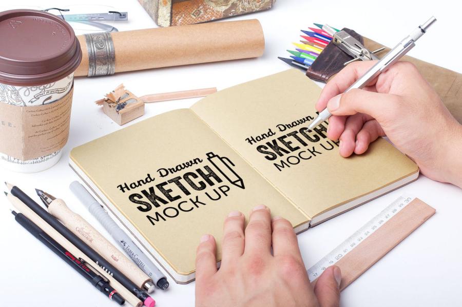 موکاپ دفترچه طراحی و اکسیس – Sketch And Drawing Mockup