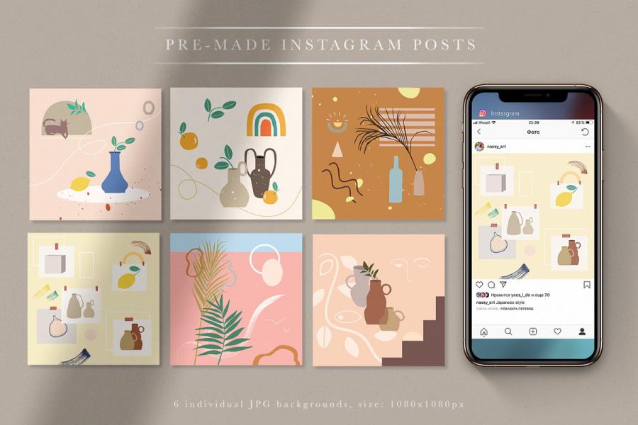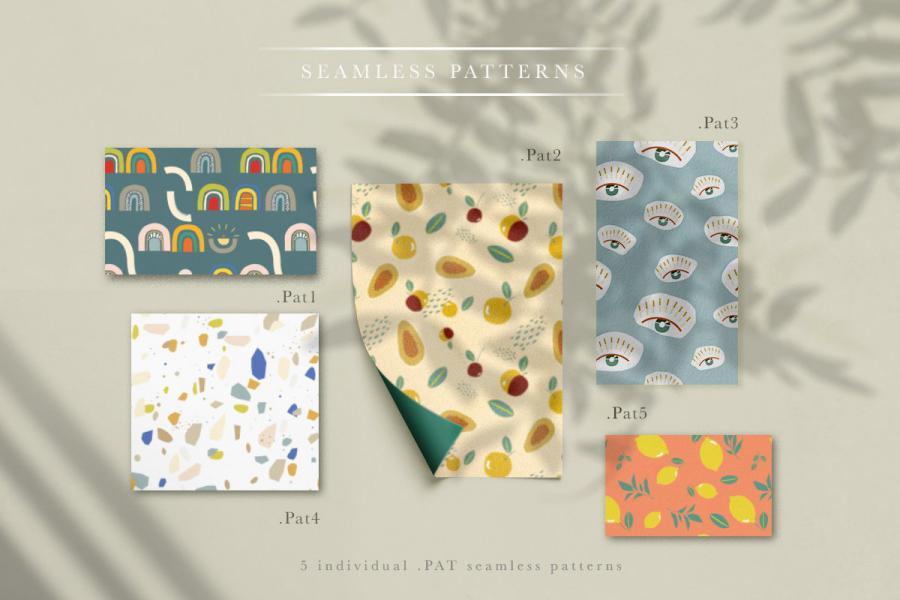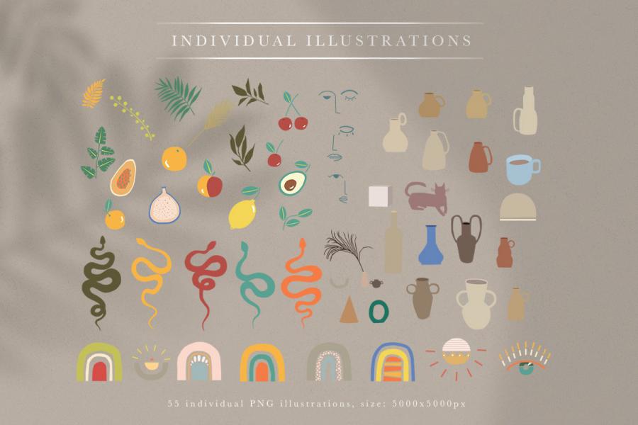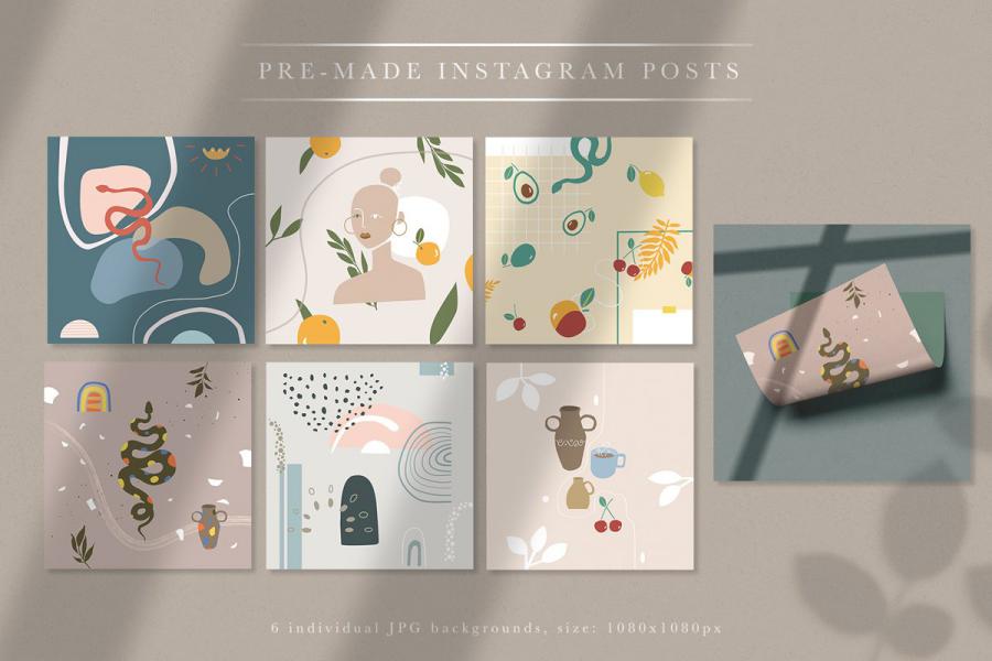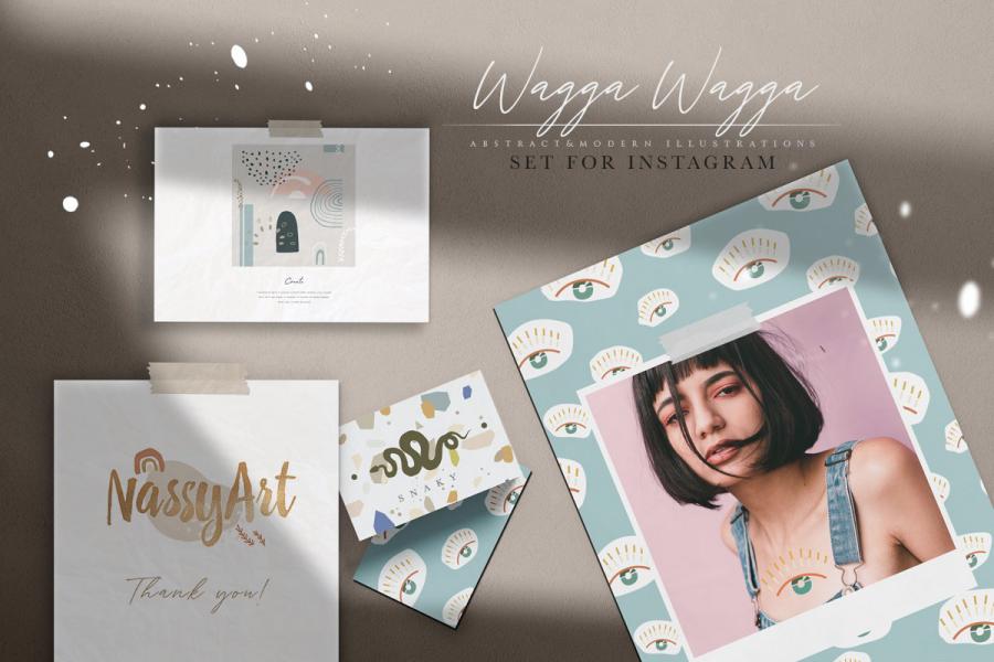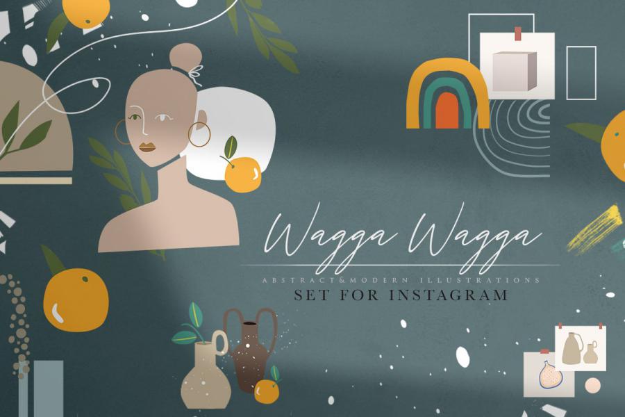 Wagga Wagga – Create magical branding with this set of colorful modern&abstract shapes with elements that contain pre-made objects, such as compositions, backgrounds, seamless patterns, artboards, isolated creative abstract shapes and backgrounds for instagram. Use these elements to create your own unique branding design. You just need to select an element, combine other provided items and сhoose a pattern or background. And branding will be ready! In this pack, you can find a variety of color artboards and patterns. They are available to mix and match for design projects with endless composition combinations of all pieces.