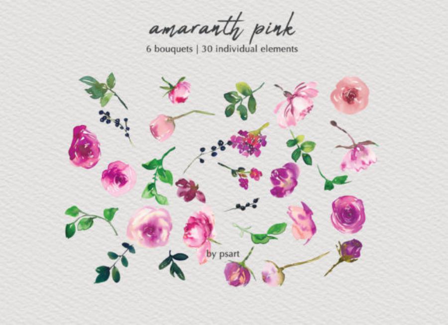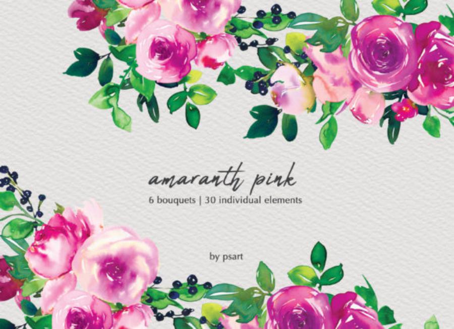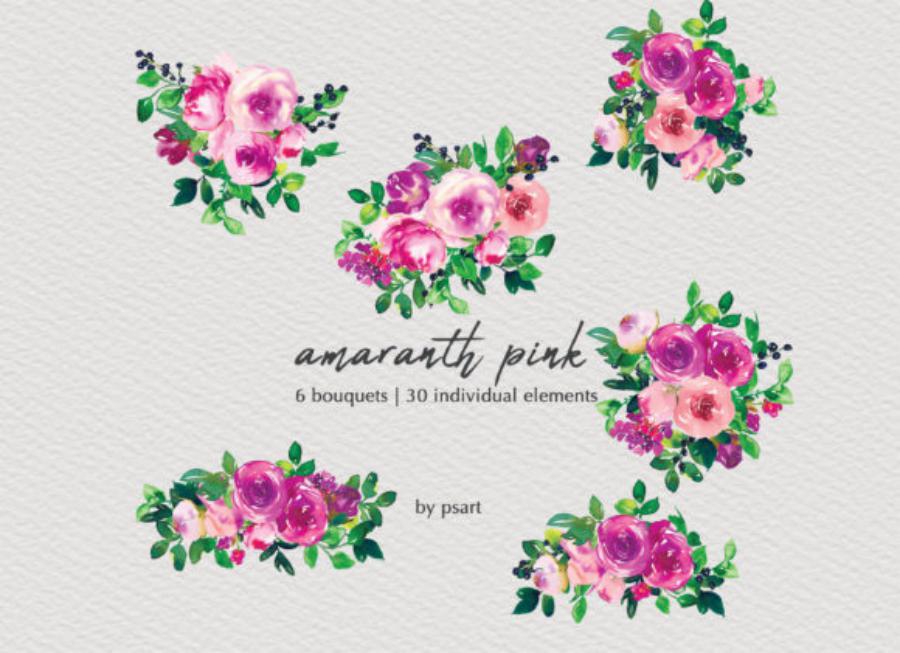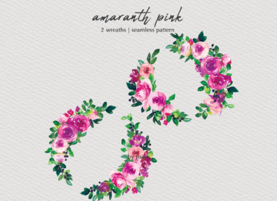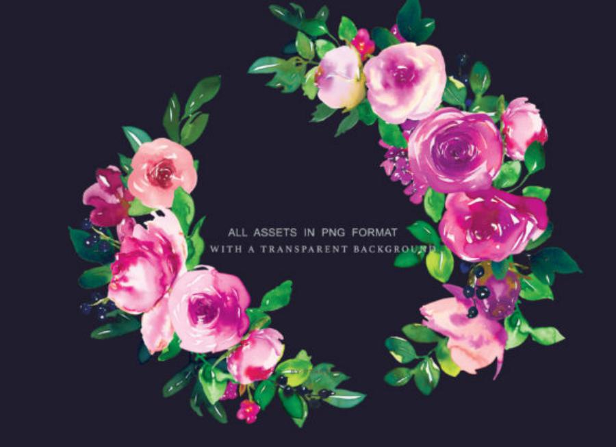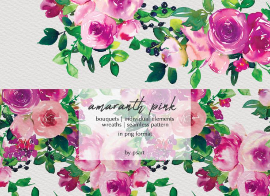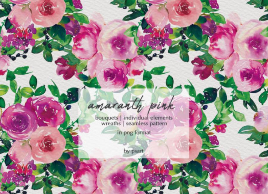 Watercolor pink floral clipart collection. Inside you will find bouquets, separate elements, wreaths, and seamless pattern. This collection is perfect for wedding stationery but can also be used for branding, logos, scrapbooking etc.