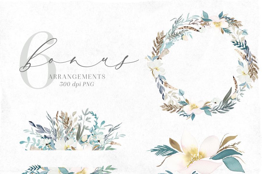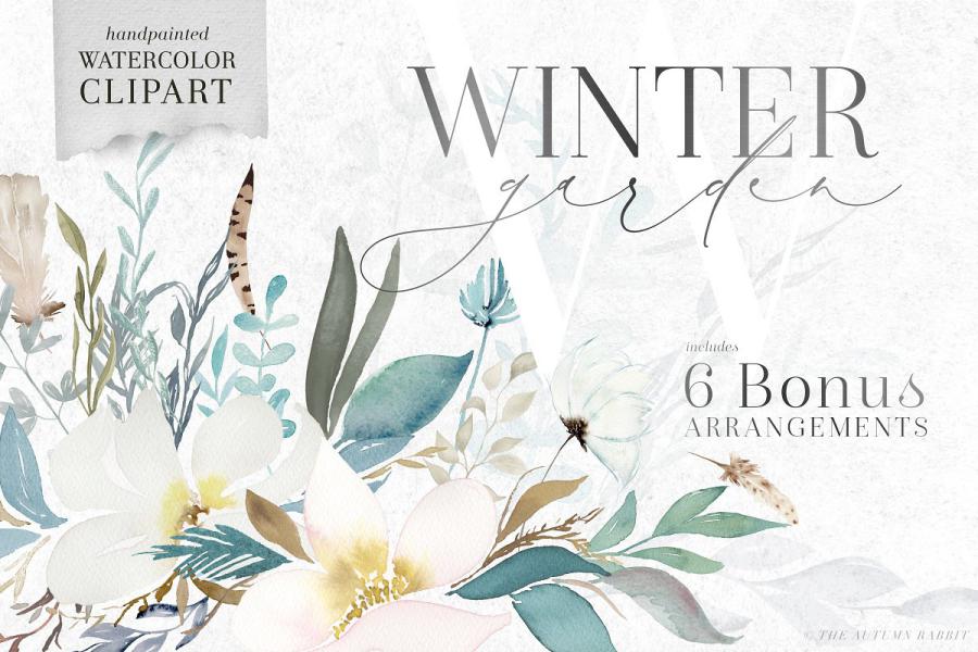 تصاویر PNG گل ها و گیاهان آبرنگی زمستانی – Watercolor Clipart