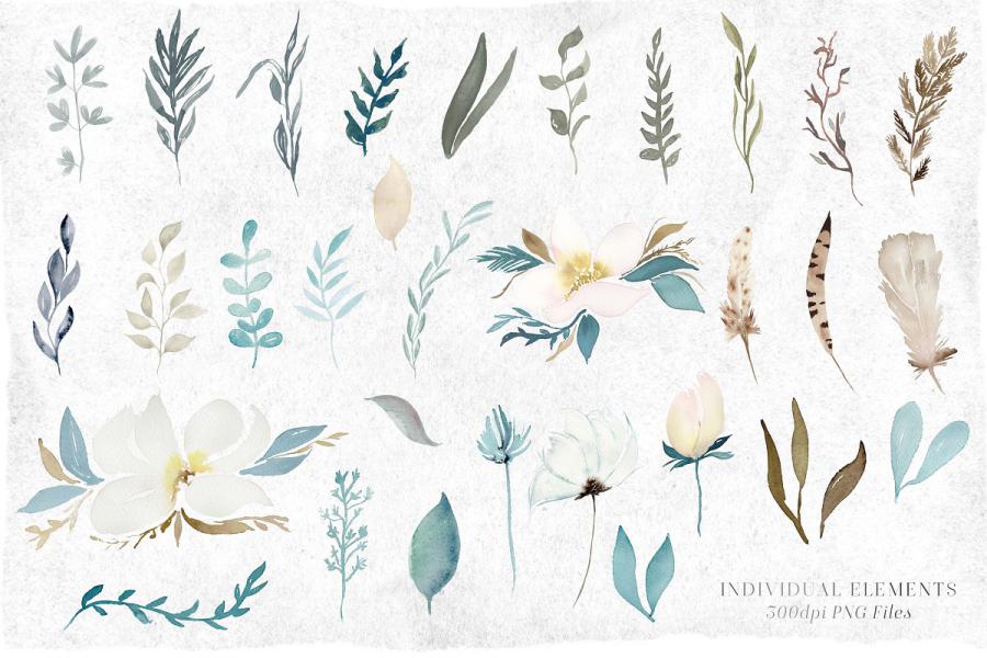 ۳۳ Unique Hand painted Leaf watercolor graphic elements + 6 Bonus Arrangements!